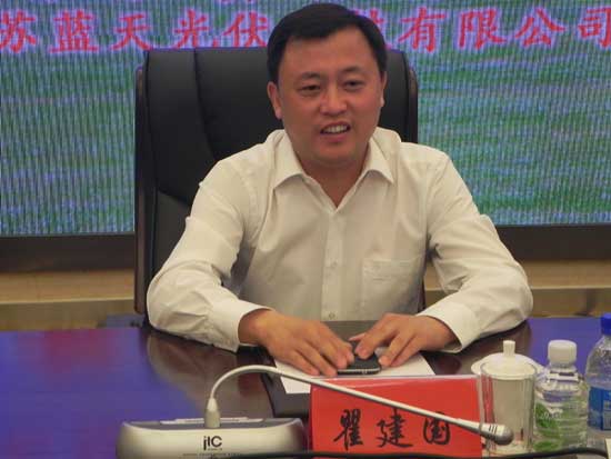 藍天公司總經理瞿建國出席簽約儀式并講話 江蘇藍天光伏科技有限公司總經理瞿建國介紹了公司概況,并對巴林右旗黨委政府和相關部門的支持幫助表示感謝。