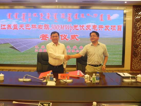 江蘇藍天巴林右旗500MWp光伏發(fā)電開發(fā)項目簽約儀式在巴林右旗舉行