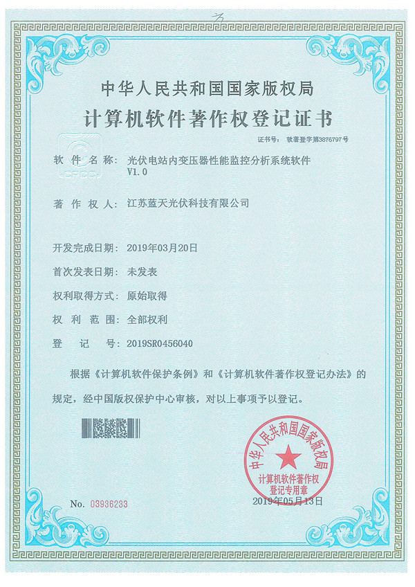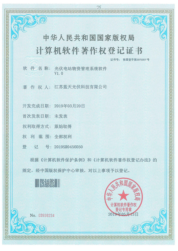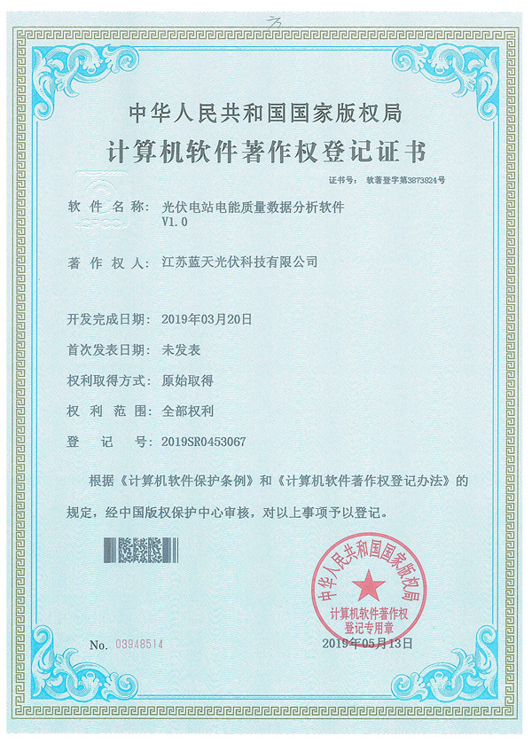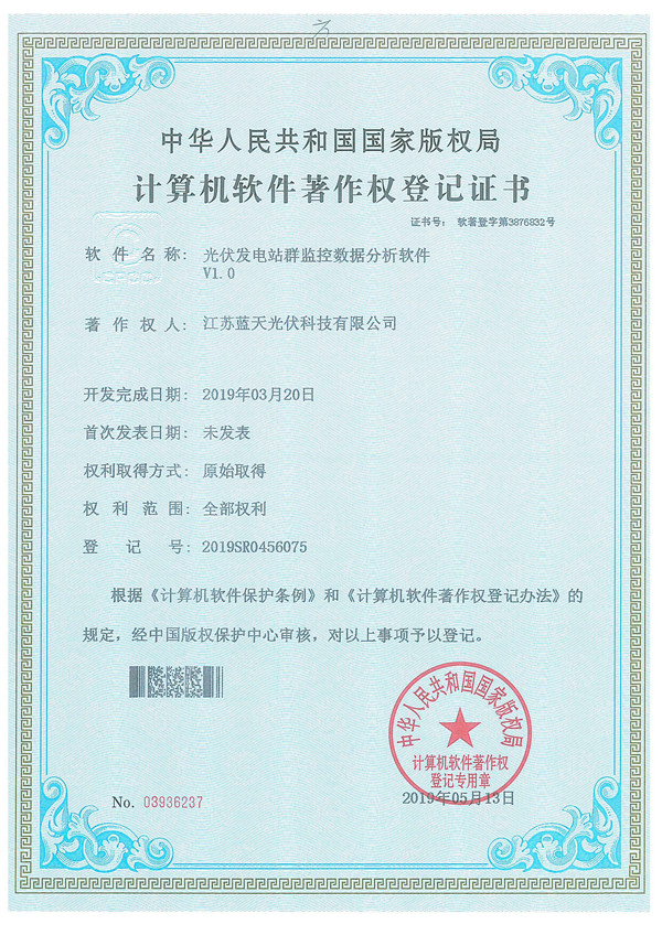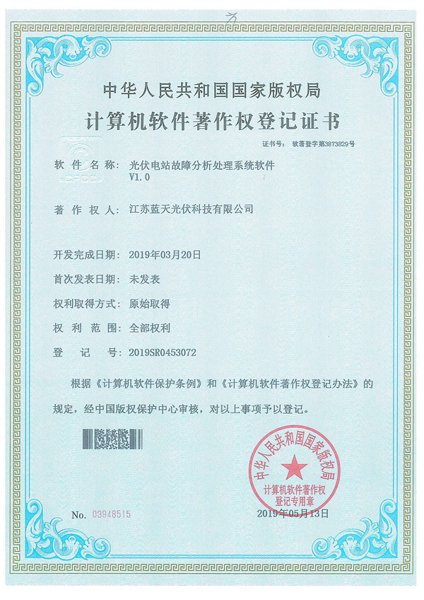 軟件著作權(quán)證書:光伏電